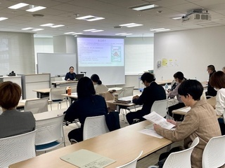 IPSモデルに基づく就労支援の取組についてお話しいただきました。講義のあとは、2つのグループに分かれ、日頃の支援について情報交換を行いました。